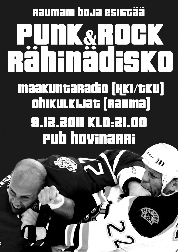 Boja järjestää perjantaina 9.12. pubi-illan Rauman intellektuellisuuden tyyssijassa, Pub Hovinarrissa! Leikkimielisesti ”rähinädisko”-nimellä kulkevassa happeningissa on luvassa punkkia, rokkia, hyviä tyyppejä, hengailua ja ehkä muutama janojuoma.